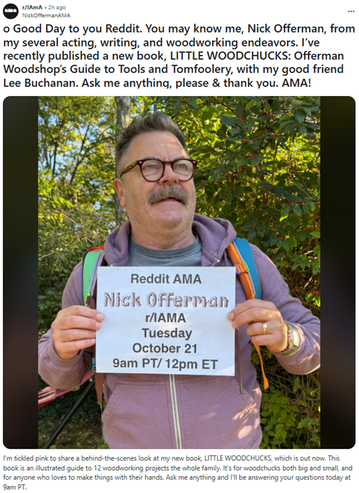 AMAs don’t have to be limited to writer-focused spaces or even to the r/IAmA subreddit where most of these are conducted. For a more engaged and targeted audience, you may want to try a space specific to your area of knowledge. For example, if you wrote a book for expecting parents or about parenting, you could check out spaces where parents seek advice, like r/newparents or r/beyondthebump. Spaces like r/AskHistorians or r/AskScience can be great places to answer questions (just be ready to cite your sources!).